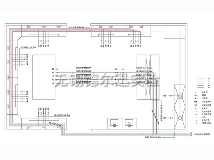 在現(xiàn)代化的實驗室中,為了完成實驗,需要用到多種分析儀器,如氣相色譜儀,原子吸收,氣—質(zhì)聯(lián)用儀,ICP等等,其中這些儀器需要用到高純氣體,傳統(tǒng)的做法是采用獨立鋼瓶分散供氣的模式,這種供氣模式每臺儀器設(shè)備單獨配置氣體鋼瓶,分別滿足每臺儀器設(shè)備的使用,但隨著近年來實驗室投資的不斷加大,儀器設(shè)備的迅速增加,用氣量也逐年增加,傳統(tǒng)的供氣模式已經(jīng)難以滿足儀器設(shè)備增加的需求,同時分散供氣模式帶來的實驗室布局混亂,鋼瓶的頻繁替換也對實驗室的管理和維護造成了困難,為了解決以上兩個方面的問題,就需要一套安全性高且能實現(xiàn)集中分配供氣的系統(tǒng)完成從氣源向儀器的供氣,這就是實驗室高純氣體管道系統(tǒng)的功能所在。